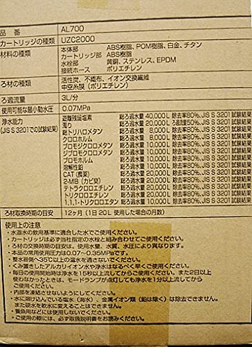 三菱レイヨン製 浄水器・整水器 AL700 浄水カートリッジは高い信頼と評価を得ているUZC2000を採用、「家庭用品品質表示法」対象の13物質を高度除去します。 タッチパネルの簡単操作で6種類の水が選べます。 アルカリユニットとカートリッジはシンク下にビルトインできるので、シンクまわりを広々と使用できます。