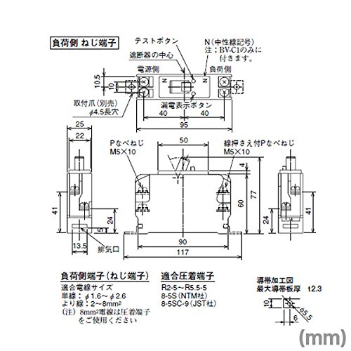 三菱電機 BV-C1 20A 100V 30MA 漏電遮断器 (分電盤用) (分岐回路用) (2P1E) NN