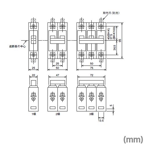 - JIS C 8201-2-1協約寸法に適合する遮断器です。