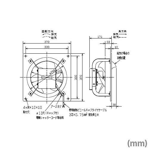 三菱電機 EF-25ATXB3 産業用送風機 有圧換気扇 (三相) (200V) (羽根径:250mm) (周波数:50Hz、60Hz共用) NN