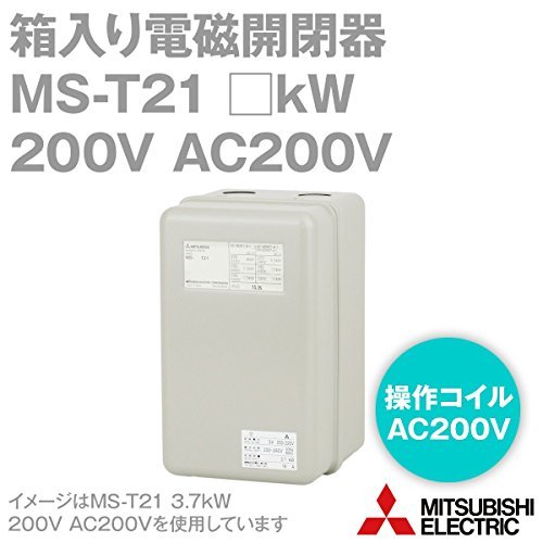 三菱電機 MS-T21 0.1kW 200V AC200V 2a2b 箱入り電磁開閉器 (補助接点: 2a2b) (代表定格18A) (ねじ取付) (充電部保護カバー) (TH-T25使用) NN