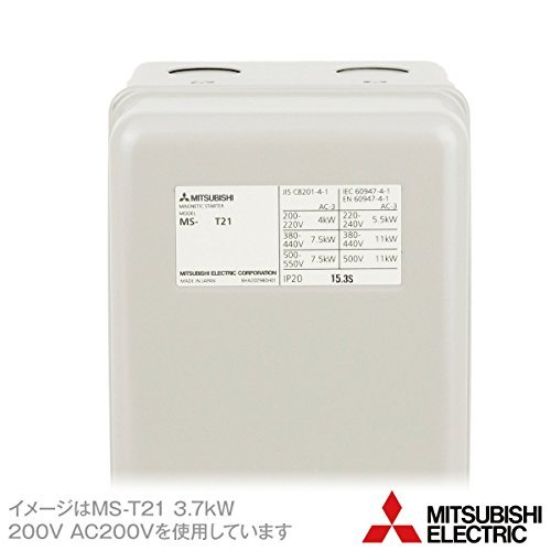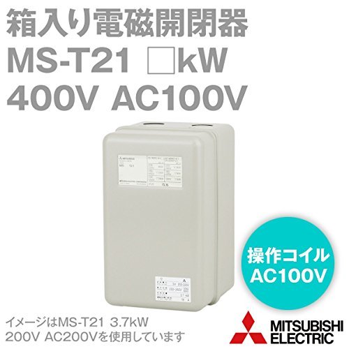 三菱電機 MS-T21 0.1kW 400V AC100V 2a2b 箱入り電磁開閉器 (補助接点: 2a2b) (代表定格18A) (ねじ取付) (充電部保護カバー) (TH-T25使用) NN