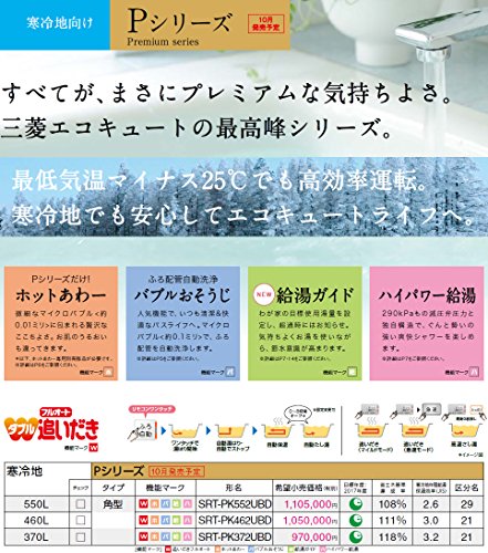 【SRT-PK372UBD】 三菱 エコキュート 370L 角型 Pシリーズ フルオートW追いだき 寒冷地向け (主に3~4人用)