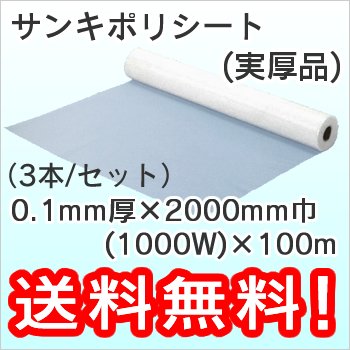 三鬼化成 ポリシート (実厚品) 0.1mm厚×2000mm巾(1000W)×100m (3本)