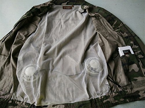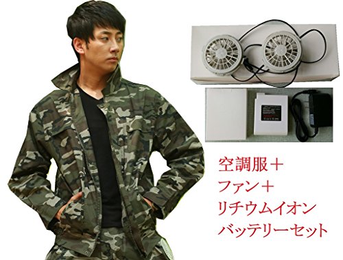 (熱中症対策)綿100% 高所作業用 長袖 空調服 バッテリー・ファンセット エアコン服 迷彩 サイズ180