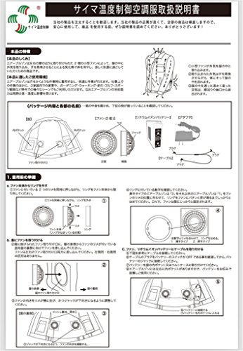 熱中症対策に最適。炎天下での作業・空調のない作業所内での作業・農作業などに。チタン加工により、赤外線・紫外線をカットし、消臭機能を持たせている。空調服の上から雨具を着ても隙間ができ、快適に作業できるファンスペーサーと、ファンスペーサーに取り付けてホコリの侵入を防ぐフィルターをセット。セット内容:空調服・リチウムイオンバッテリー(充電器・バッテリーケース付)・ファン2個・接続ケーブルバッテリー仕様:容量4400mAh・出力(4段階切替)・充電時間約6時間使用時間目安:約30時間(3V設定時)・約6.5時間(7.2V設定時)サイズチャット【サイズ160】肩幅46cm、バスト114cm、ウエスト114cm、着丈66cm、袖丈54cm【サイズ165】肩幅48cm、バスト116cm、ウエスト116cm、着丈68cm、袖丈55cm【サイズ170】肩幅50cm、バスト120cm、ウエスト120cm、着丈70cm、袖丈57cm【サイズ175】肩幅52cm、バスト124cm、ウエスト124cm、着丈72cm、袖丈59cm【サイズ180】肩幅54cm、バスト128cm、ウエスト128cm、着丈74cm、袖丈60cm【サイズ185】肩幅56m、バスト132cm、ウエスト132cm、着丈76cm、袖丈62cm【サイズ190】肩幅58m、バスト136cm、ウエスト136cm、着丈78cm、袖丈64cm*実寸メジャー采寸の為、若干の誤差が生じる場合が御座いますので、ご了承ください。*サイズ表はあくまでも目安として参照してください。サイズ等でご不明な点はお問い合わせください。熱中症・節電対策に最適 空調服は左右の腰の辺りに取り付けられた2基のファンにより、 服の中に外気を取り込み汗を蒸発させることによる気化熱で体を冷やす。 効果 夏の現場作業において、暑さによる疲労軽減、作業効率の向上、熱中症対策に効果あり。 空調服を使用することにより、身体への疲労軽減と作業効率アップが期待できます。