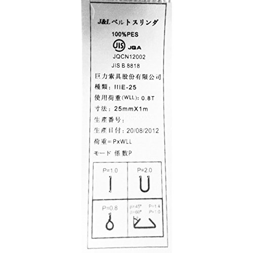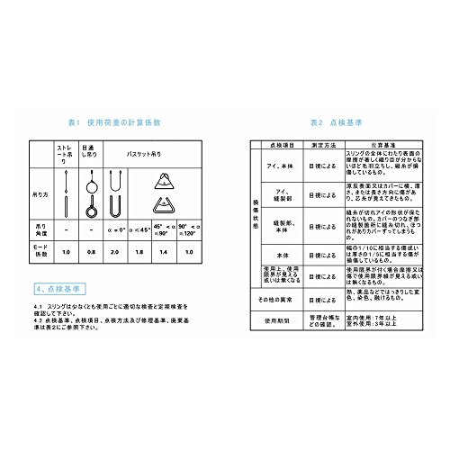 - 使用可能温度:100℃以下(-30℃また50℃を超えた場合、スリングの使用荷重はメーカーの説明によってご使用ください)