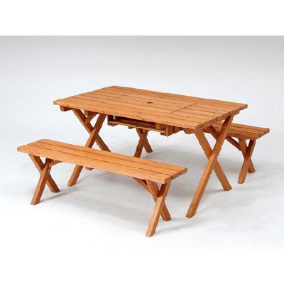 ガーデンテーブルセット バーベキュー木製テーブル&ベンチ3点セット(コンロスペース付) 杉材使用