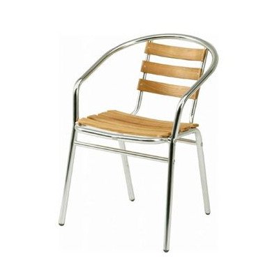 ガーデンチェア スタッキングチェア アルミ+ウッド 2脚セット オーク材