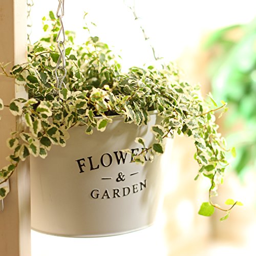 不二貿易 ガーデン フラワー ブリキ ポット 吊下げ式 Mサイズ ホワイト 24083