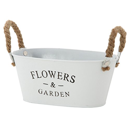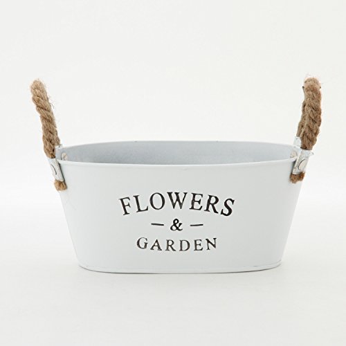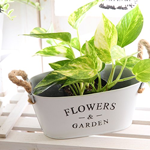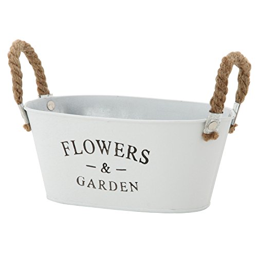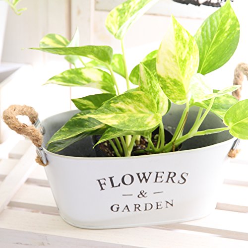 不二貿易 ガーデン フラワー ブリキ バケツ オーバル Sサイズ ホワイト 24071