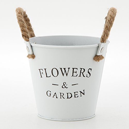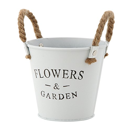 不二貿易 ガーデン フラワー ブリキ バケツ ラウンド Mサイズ ホワイト 24079