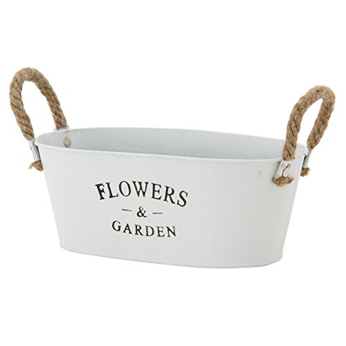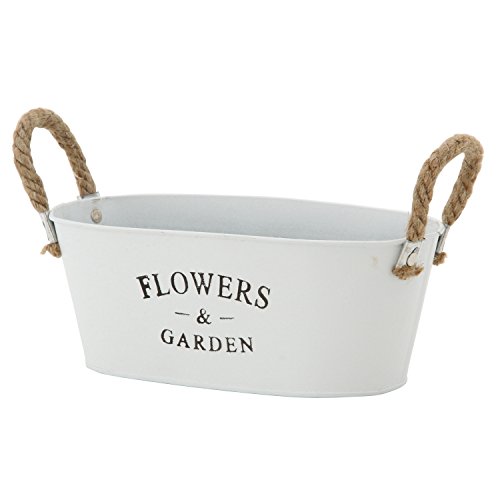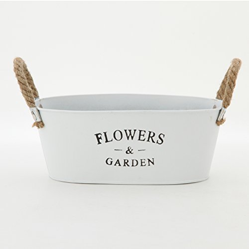 不二貿易 ガーデン フラワー ブリキ バケツ オーバル Mサイズ ホワイト 24073