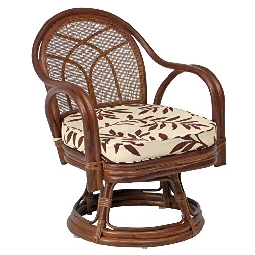 不二貿易 ラタン 回転 チェアー ミドル ブラウン 89304