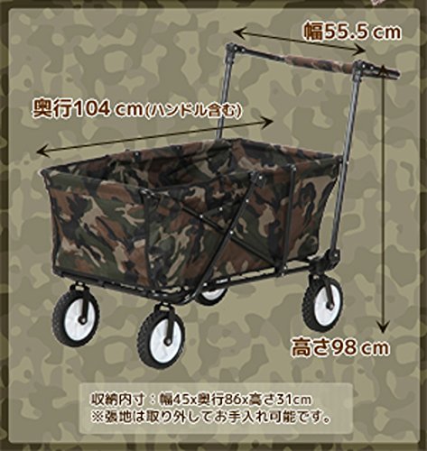 不二貿易 マルチカート ミニタイプ ワンタッチ 折畳み式 迷彩柄 グリーン 13250
