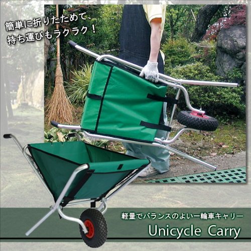 - 量でバランスの良い一輪車キャリーは、アルミフレームでさびにくく、狭いところもすいすい動けます。収納時も簡単に折りたため、車のトランクにもすっぽり納まり、持ち運びも簡単★コンパクトながら最大許容荷重30kg、積載部も43Lと容量も多く、園芸用土砂、収穫野菜の運搬、アウトドアレジャーのキャリーとしても多目的にご利用いただけます。合成ゴムタイヤで路面の多少の凸凹も気にならず、進路変更もスムーズで走行も静かです。