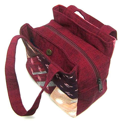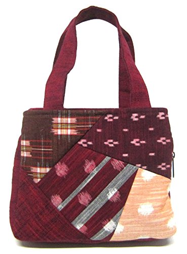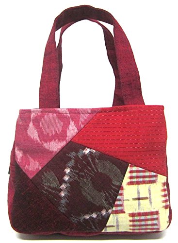 日本製 福岡県伝統工芸品 久留米絣バッグ 和柄 パッチワーク使用 多機能 両ポケット 手提げバック 赤色