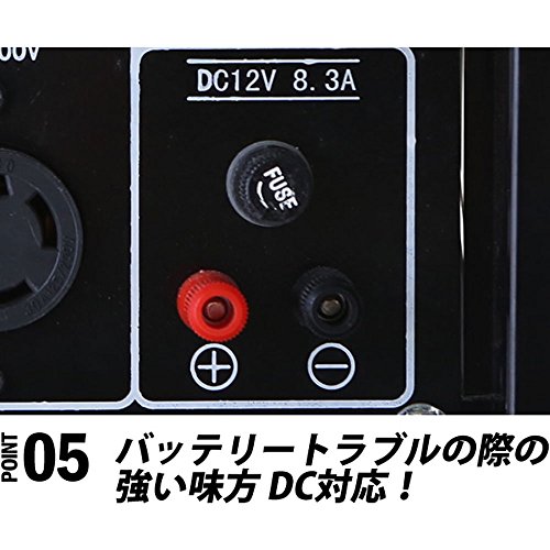 - 当店のエンジン発電機は、コンセントの差し込み口が合計3つ(200V・100V・100V)付いており、たっぷり使うための装備も十分です!セルスターターとリコイルスターターの両方を装備。鍵を回すだけのセルスターターなので女性でも簡単に始動が可能です。