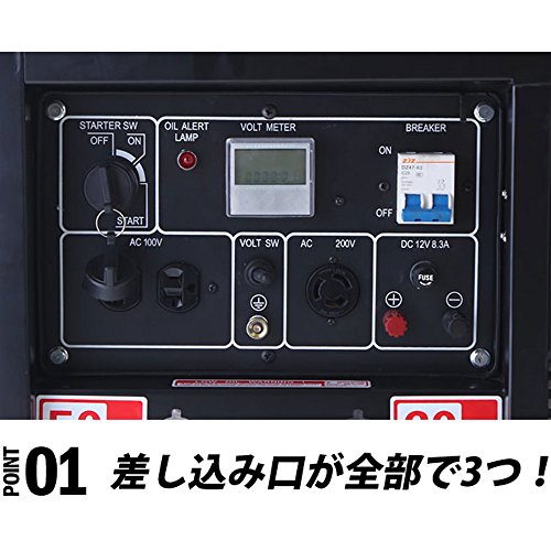 - 最新技術により200V100V単相切替同時出力を採用!本来のパワーをそのまま使用できる実用的なディーゼルエンジン搭載!! バッテリーやバッテリー液が入ってない商品などが出回っておりますがこちらの商品はバッテリー・バッテリー液もしっかり入っております。