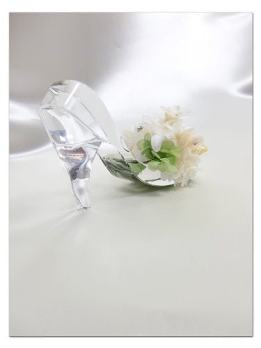 本当のガラス素材だけが持つ透明な輝きが美しい靴に、白いチューベローズにブルースター(ホワイト)とミニ薔薇をアレンジ。パステルカラーのリボンとスワロフスキーでキラキラとした輝きを添えました。純粋無垢な女性のイメージ。結婚のお祝いや大切な方への贈り物に、最適です。ガラスの靴は、クリアキューブボックスの中に固定しているので外れません。プレゼントラッピングをしてお届けします。