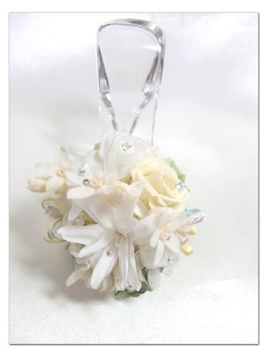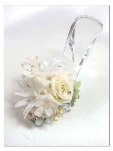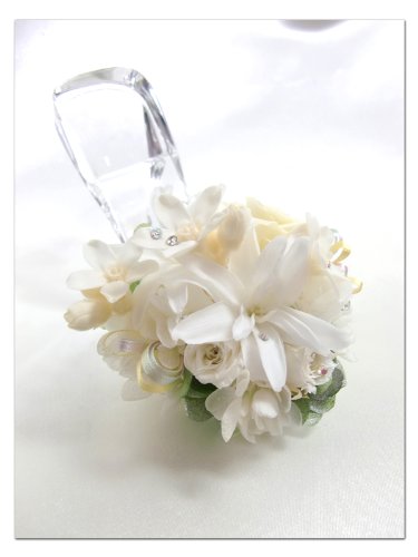 - ■使用材料 チューベローズ、薔薇、ブルースター、紫陽花、スワロフスキー、リボン■時期によりブルースターの色が変わる場合がございます。(ガラスの靴の素材はガラスです )