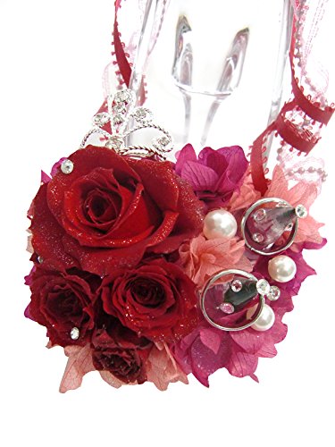 - ■使用材料 薔薇、紫陽花、スワロフスキー、パール、リボン、ティアラ【シューズの素材はアクリルです。】■ご希望の方にはシューズの正面又はケースに名前やイニシャルのシールをお付けいたします。