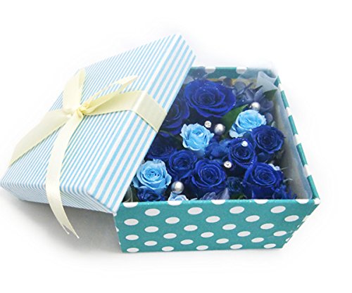 世都華 プリザーブドフラワー 布張りスクエアボックス ブルー st-aosuku