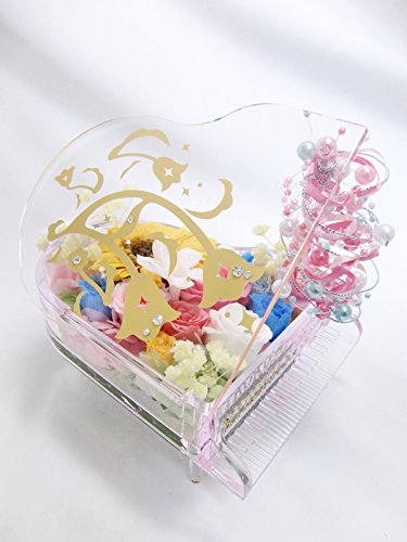 - ■使用花材 ガーベラ(同系色で色味が変わる場合がございます)薔薇、ジャスミン、紫陽花、スワロフスキー、パール■蓋の部分の金模様の音符デザインは少しデザインが変わる場合がございます。■ピアノの素材はアクリル制です