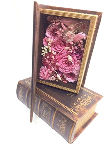 ■本を開けると、ロマンチックなピンクのお花たちで一杯にしました。サプライズの贈り物におすすめです☆ 本を開けると、沢山のピンクカラーの様々な種類のお花たちを一杯にアレンジしました。イメージは恋する思いやあふれそうな思いを本の中に表現しました。 ファンタスティックでロマンチックなアレンジです。ブックボックスも、洋書のようにお洒落なデザインです。 ギフトにもしやすいのでサプライズのプレゼントにもおすすめです。