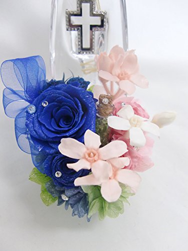イメージしたのはロミオとジュリエット。スワロフスキーの十字架とジュリエットがロミオのために飲んだ薬の瓶に見立て、中には綺麗なグリーンの天然石ペリドットを入れました。二人の恋は悲劇に終わったけれど、この靴は幸せのガラスの靴になりますように…。そんな思いを込めてつくりました。青い薔薇の花言葉は「神の祝福」。ウェディングのお祝いにもぴったりです。 ■クロスのクリスタルの種類が変わる事があります。 ☆ご注文者様に商品ご発送の場合は商品の入る手さげ袋をお入れしております。