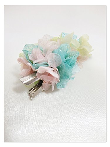 - ■商品取り扱いについて ・髪に付けられる時は、紫陽花のついていないクリップ部分をお持ち下さい。 ・へアースプレーや水分がお花に付かないようにお気をつけ下さい。 ・高温、多湿、直射日光の所はお避けください。 ・花びらはとてもデリケートで、切れやすいのでご注意下さい。