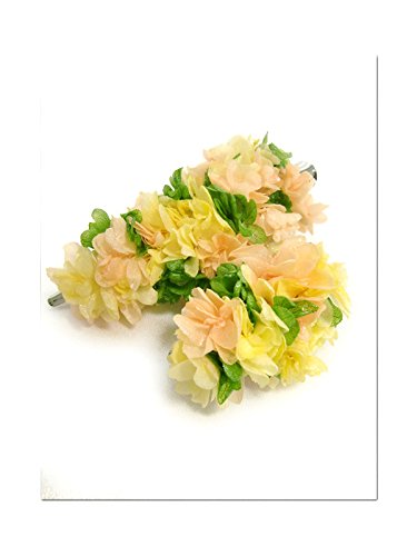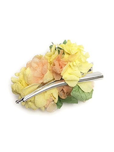 ☆本物のお花を加工した魔法のお花、プリザーブドフラワーの髪飾りです。フレッシュな色合いの黄色、オレンジ、グリーンを使用。明るく心を弾ませてくれそう 魔法の枯れないお花、プリザーブドフラワーのサイズ違いの2点セットの髪飾りです。明るい黄色、オレンジ、グリーンの3色を使用。フレッシュ感のある色合いが心を明るく弾ませてくれそうです。クリップタイプで、使いやすくできているのもうれしいところ。花びらにはとても細かい粒子のラメを施しました、控えめでさりげない輝きがとても素敵ですよ。このラメにはうれしい効果も。色移りや紫外線によるお花の色の変化を防ぎ、カビからも守ってくれます!お洋服やその日の気分で、自由なスタイルを楽しんでいただけます。 ご自分用の普段使いはもちろん、お友達やご家族へのプレゼントにもおすすめ。母から娘への贈り物に…などというのも素敵ですね。