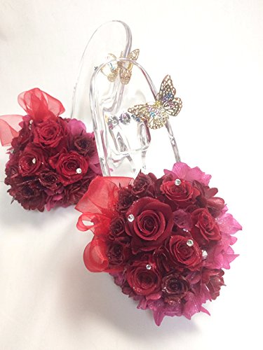 - ■使用花材 薔薇、紫陽花、蝶々、スワロフスキー、リボン【シューズの素材はアクリルです】■ご希望の方にはシューズの正面に名前やイニシャルのシールをお付けいたします。