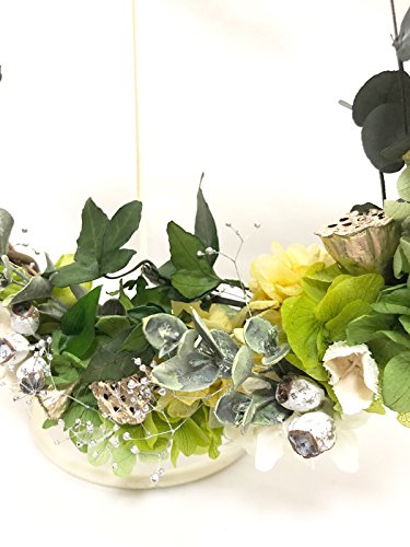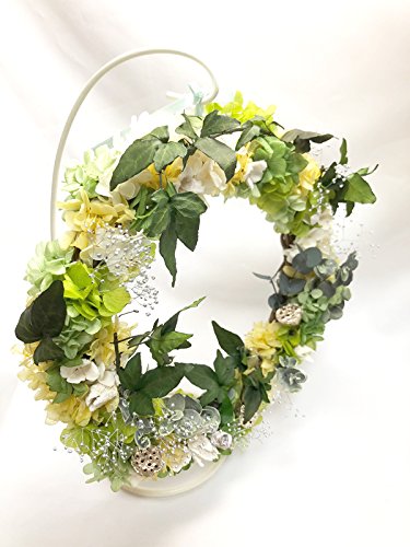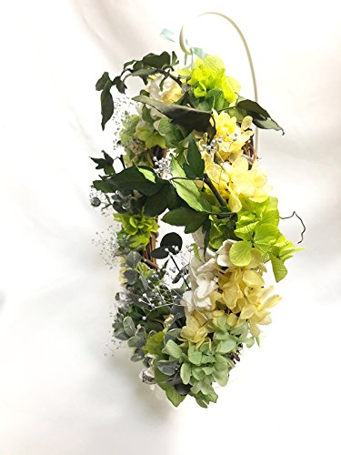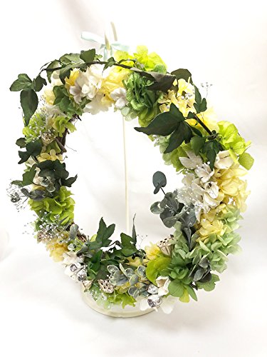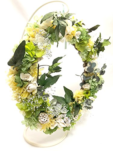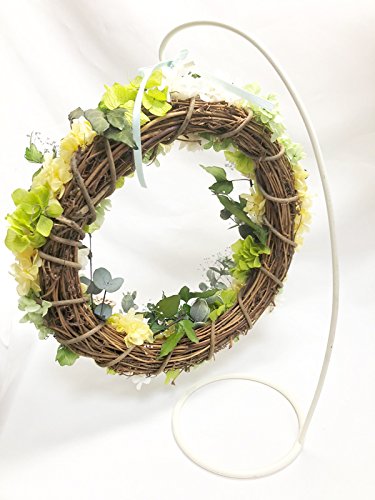 - ■使用花材 紫陽花 かすみ草 ブナの実、ハス、ユーカリ アイビー リーススタンド ■リーススタンドや使用花材は時期により種類や色が変わる場合がございます。