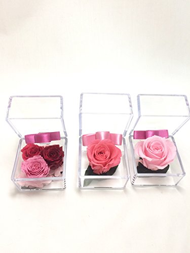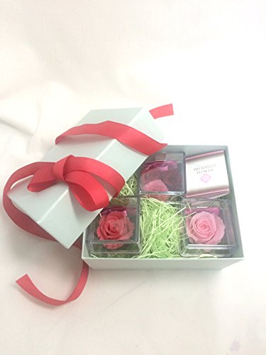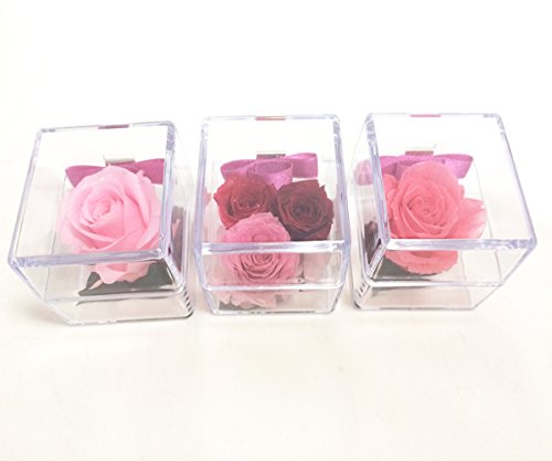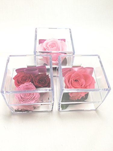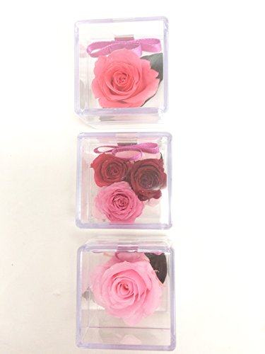 薔薇を可愛らしいアクリルキューブにアレンジしました。ピンク系キューブは濃いピンクとパステルピンクとミニ薔薇を合わせた3個セットギフトです。 一つずつ置く場所を変えたり、シェアギフトにもいいですね。お花には微粒子ラメをお付けしていますので、上品な輝きがあります。 ギフトボックスにいれてお届けいたします。