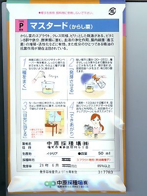 スプラウト用種子40ml入りの小袋規格です。 マスタード(からし菜)の種ですので、スプラウトにしてもピリッとした辛味が楽しめます。