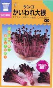 【特徴】四季を通じていつでも、どこでも栽培出来る葉も茎も鮮やかな赤紫色になるかいわれ大根。カロチンやビタミンC、ビタミンKが多い。抗酸化、抗菌作用があり、よく噛んで食べると酵素反応が活発化して効果を増す。