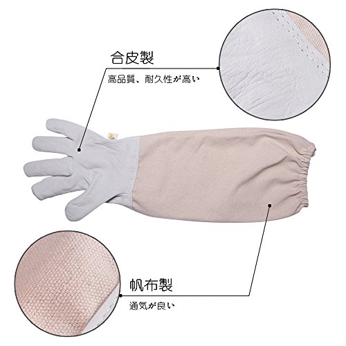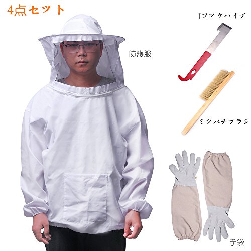 Vingtank 養蜂 防護服 手袋 J形状ハイブツール 養蜂用ブラシ 4点セット 養蜂ツール 害虫駆除 蜂 駆除 ぶよ 蚊 対策 虫よけ 養蜂 草刈り ガーデニング (ホワイト)