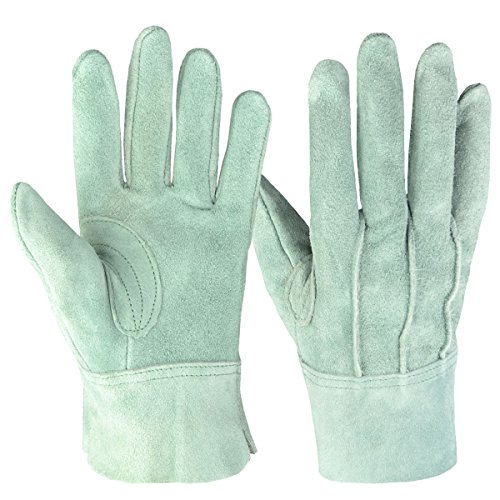 LUQI (ミドリキ) 手袋 グローブ A級 牛本革 作業用 オイル手袋 グリーン 10双組 背縫 補強式 リガー(M)