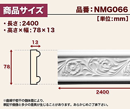 - ポリウレタン製モールディング。長さ2.4m。壁の中央部をぐるりと装飾するチェアレールとして、また、額縁として使用など用途色々です。