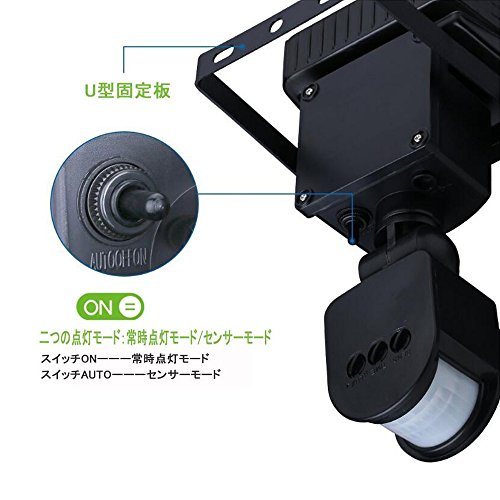 - 【カスタマイズ設定可能】:通常点灯モードとモーションセンサーモードが搭載され、必要によって、モードを選べます。モーション検出器が内蔵され、自動的に点灯します。(センサー範囲:16.4フィート以内-120°の角度)三つのコントロールダイヤルが設置して、カスタマイズ設定ができます。