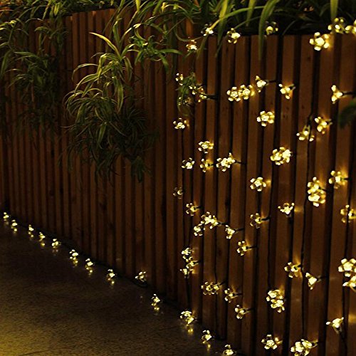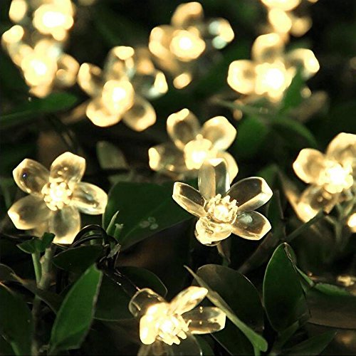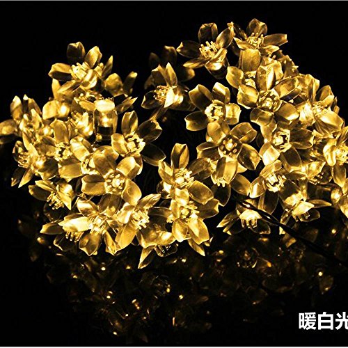 Boilee 50LED led ソーラー充電式 ガーデンライト 結婚式 桃花形電飾 クリスマス 屋外 防水 ウォームホワイト A036