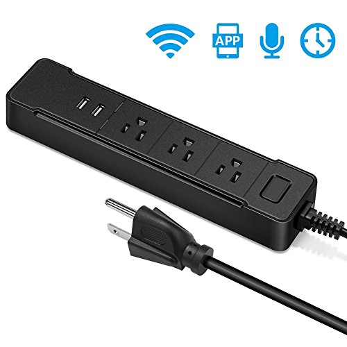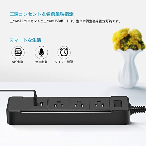 Lzcat Wifi スマートコンセントAC電源 三連+ 二つのUSBポート 家庭用プラグコンセント Google Homeと連携可能 (黒)