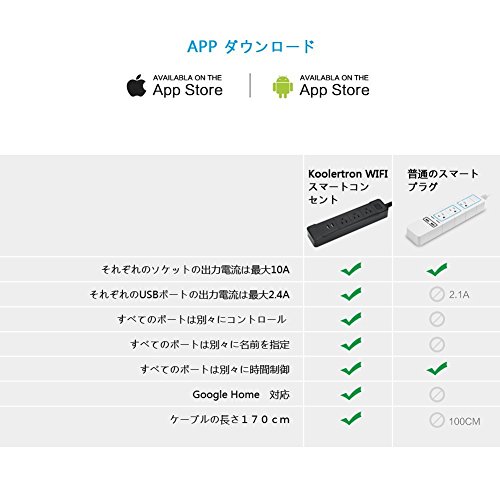 特徴:タイミング、APPコントロールのON / OFF、Google Home Assistantとの互換性