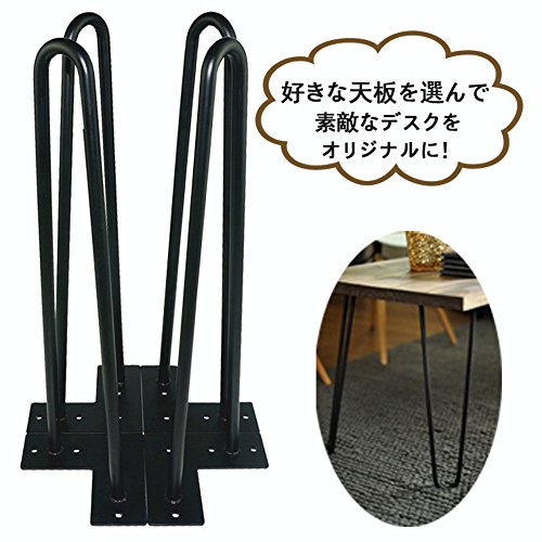 テーブル脚 デスク用鉄脚 ロテーブルパーツ DIY家具素材 16インチ 黒 4本入り