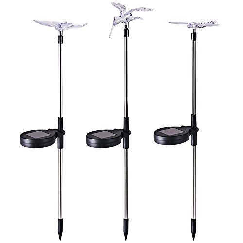GZCRDZ 太陽の充電式ガーデンライト、ハチドリ、蝶、ドラゴンフライの色を変更するledフェンス、装飾のための無線太陽光庭、庭、花壇 (白い)