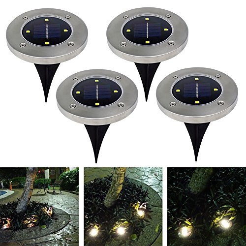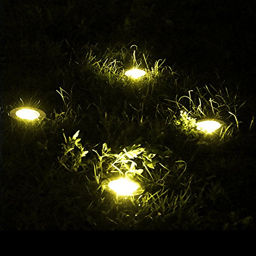 埋め込み式 LEDソーラーライト 4個セット 防水 光センサーで夜間自動点灯ライト埋め込み式防水ライト ガーデン、庭、芝生、公園 (暖かい白色光)