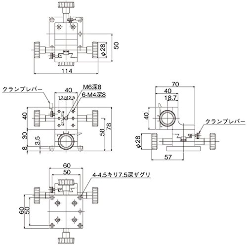中央精機 DT X・Z軸ステージ 40×40 両ハンドル LM-412WL