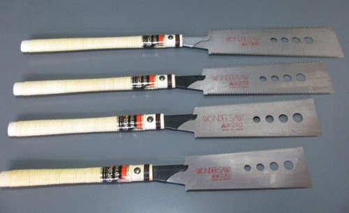 刃のほぼ中央に4つ穴を開けることにより、刃のバランスが良く使いやすい。手軽に使える両刃ノコギリです。