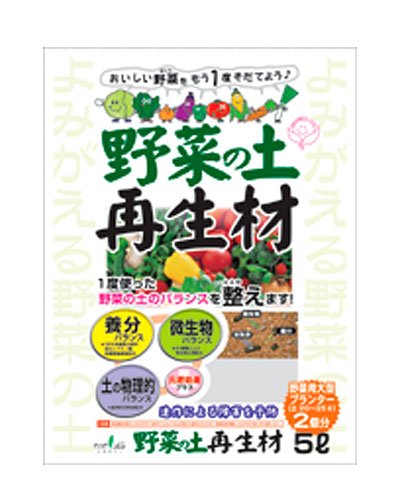 ●【商品説明】●「トヨチュー 野菜の土の再生材 5L」は、1度使った野菜の土のバランスを整える再生材です。●栄養バランス、微生物バランス、物理的バランスを整えることで、ふかふかに再生し、もう一度野菜づくりに使用できます。●【使用方法】●「野菜の土再生材」をスコップでよく混ぜてください。●※混ぜ込む前に苗や根をよく取除いてください。●※1度使用した培養土は、ほぼ使用していない時期には完全に乾燥して水をはじきます。●よく水になじませてからご使用ください。●※古い苗や根を取除き、天日消毒した後に「野菜の土再生材」を混ぜて使用しますと、より良い土になります。●【ご注意】●食べ物ではありません。●(食用不可)●子供の手の届かないところで保管してください。●使用前に袋の説明をよくお読みください。●使用済みの空き袋は放置せず、各自治体の条例に従って廃棄してください。●開封後は密封し、乾燥した雨のあたらない場所に保管してください。●【品質表示】●【成分分析(例)及び使用原材料】●水分:16.5%、pH:8.4、チッ素:2.24%、リン酸:0.74%、カリ:0.78%...